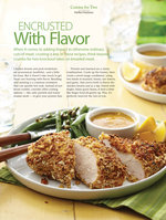 …the two of you. ENCRUSTED 20 CuisineAtHome.com Pretzel-Crusted Chicken with honey mustard Depending on thickness, the chicken will cook at different rates. Be sure to temp it…of the breast registers 165°, 10–15 minutes more. Tent chicken with foil; let rest 5 minutes. Serve chicken with reserved honey mustard and lemon wedges. Per serving: 567 …Read More