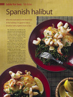 … garlic, sliced 1/4 t. red pepper flakes 1 bay leaf STIR IN AND COOK: 10 medium shrimp, peeled, halved lengthwise, and deveined DEGLAZE WITH: 2 T. dry sherry Juice of 1 lemon 3 T. … lemon juice, simmer briefly to reduce a bit, then finish with parsley. Divide shrimp and sauce between fish. Serve with greens and lemons. Per serving: 654 calories;…Read More