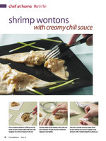 … let cool slightly. 46 Cuisineathome Issue 58 For the Shrimp-- ComBine; SAute in: 1 lb. large shrimp, peeled, deveined, tails left on 2 T. all-purpose flour 2 t. paprika 2 t. …2 T. unsalted butter Chopped fresh chives Combine shrimp, flour, and seasonings in a bowl; toss until shrimp are well coated. Saute shrimp in oil and butter in a large…Read More